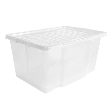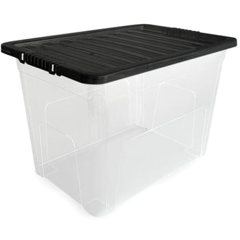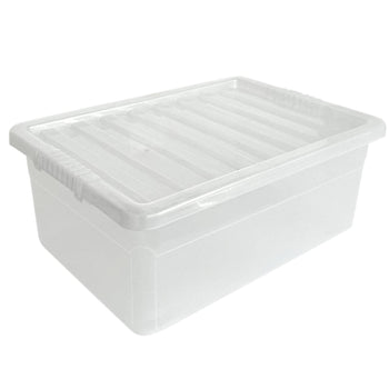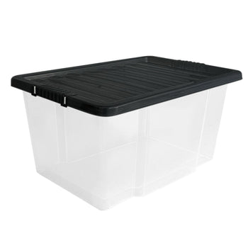 Underbed Plastic Storage Boxes with Lids – Clear & Black – 30L, 32L | Stackable Plastic Containers for Clothes, Shoes & Bedding | Space-Saving, Durable, BPA Free Storage Bins