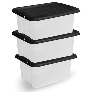 Plastic Storage Boxes with Lids – Clear Black Small Medium Large Stackable Plastic Containers | Ideal for Craft, Shoes, Toys, Office, and Kitchen Organiser | Durable, BPA Free Storage Bin (SET of 3)